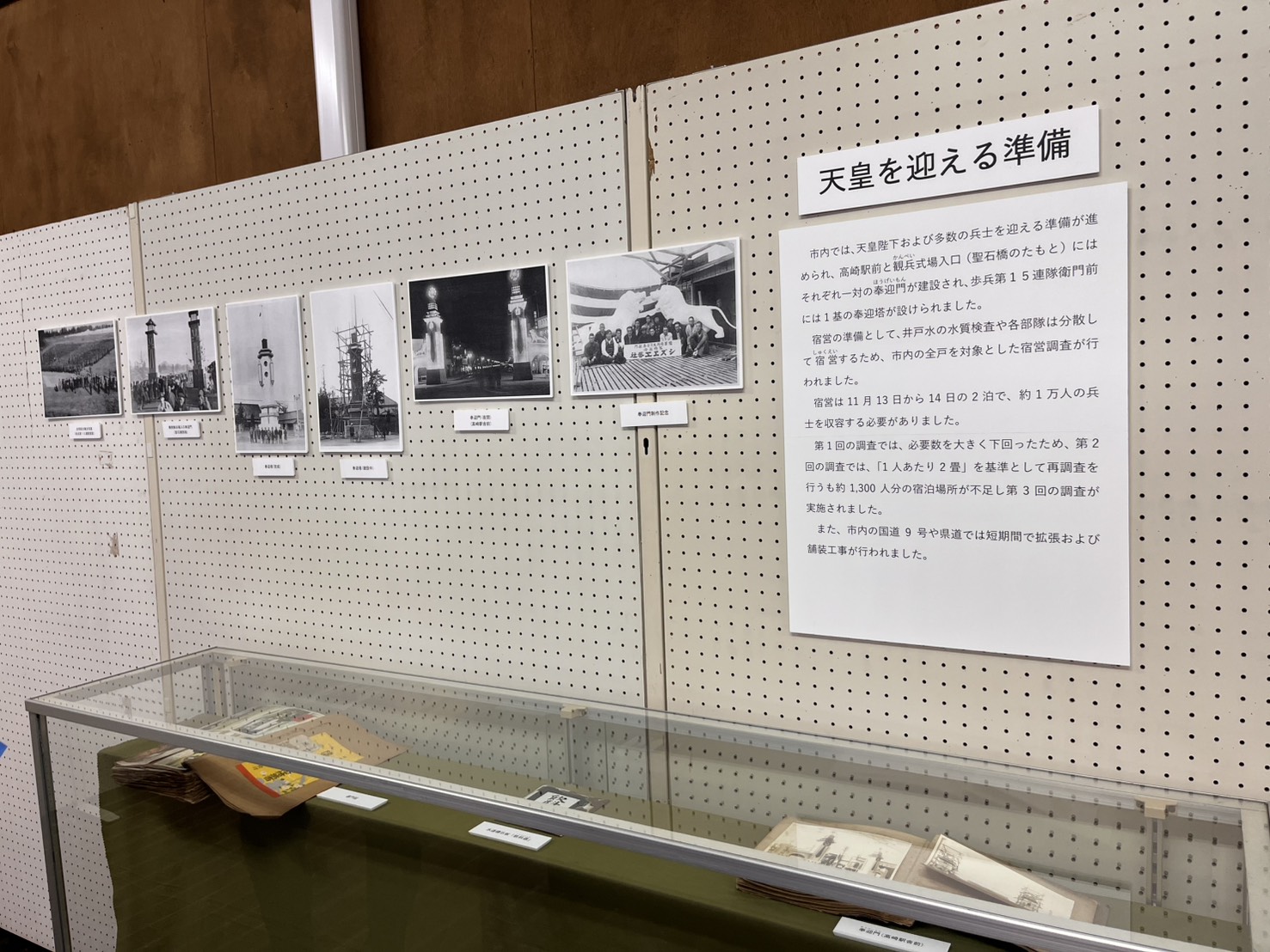 私たちが訪れたときは、「市民が見た軍都高崎の歴史-昭和 9 年陸軍特別大演習-」が開催されていました。陸軍特別大演習とは、旧日本陸軍が行った最大規模の演習で、天皇が総帥するものです。写真や記念の絵葉書を通して、その影響の大きさを知り、当時の軍を中心とした社会のあり方を考えるきっかけになりました。