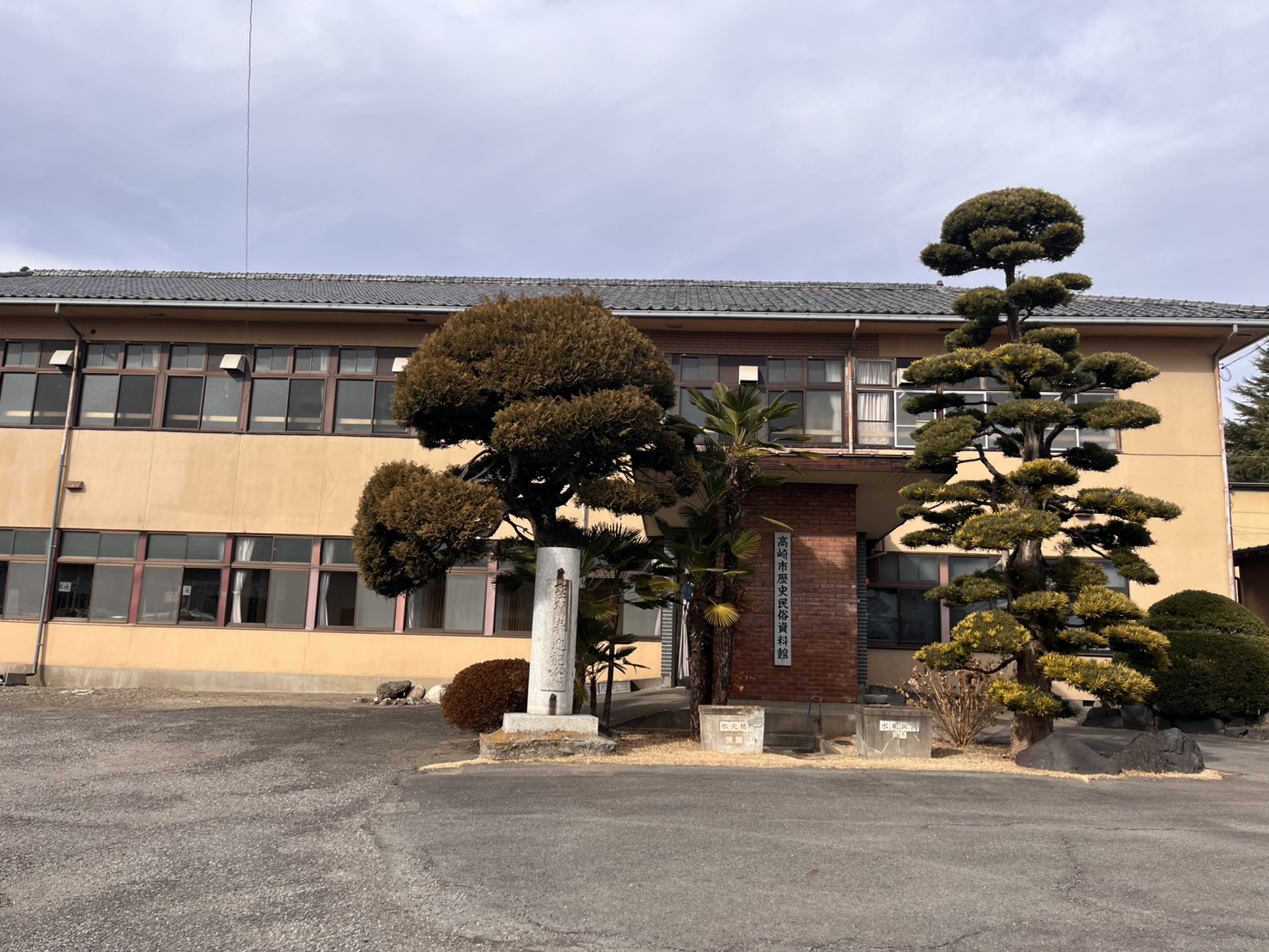 高崎市歴史民俗資料館は、高崎駅から車で約 20 分の場所にあります。建物は昭和33年に建てられた旧群南村役場の庁舎で、令和2年に国登録有形文化財に指定されています。江戸から昭和までの人々の日常生活で実際に使われていた民俗資料の収集・保存・研究・展示が行われています。