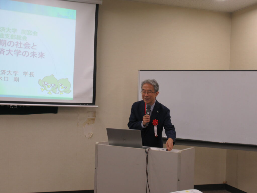 令和7年10月4日(土)に大津市市民活動センター及びあたか飯店大津店で第11回京滋支部総会が開催されました。来賓として大学から市川理事長、水口学長、同窓会から江畑副会長が出席されました。