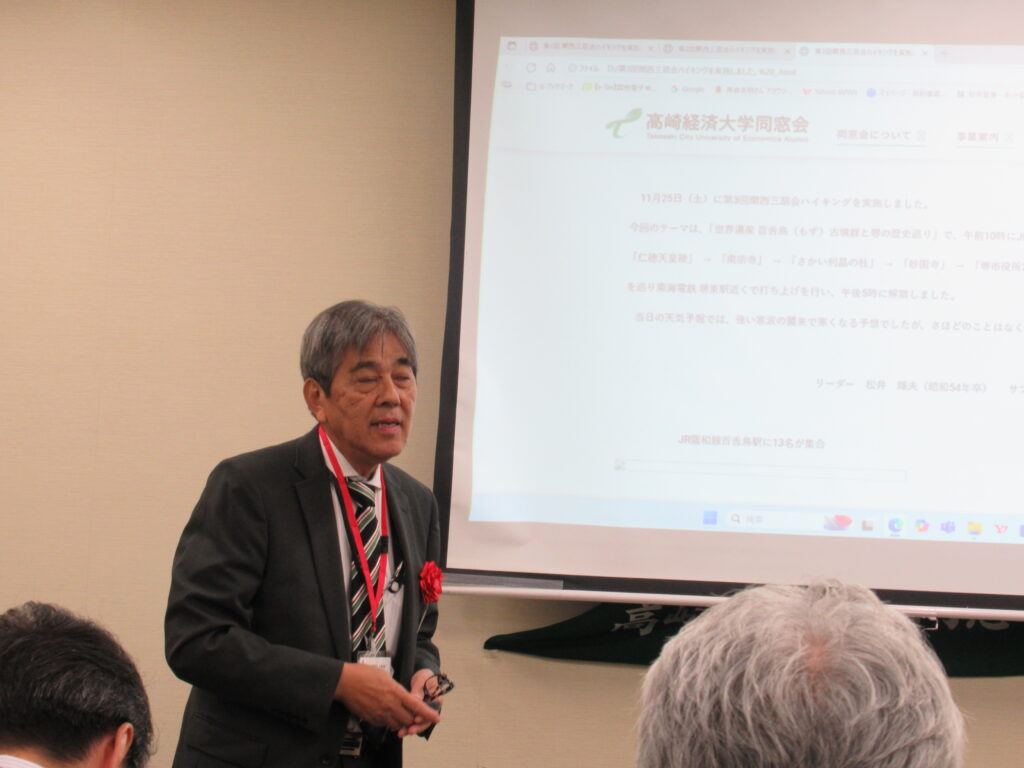 関西支部の川原畑支部長より関西支部で開催しているハイキングの説明と参加のお願いがございました。
