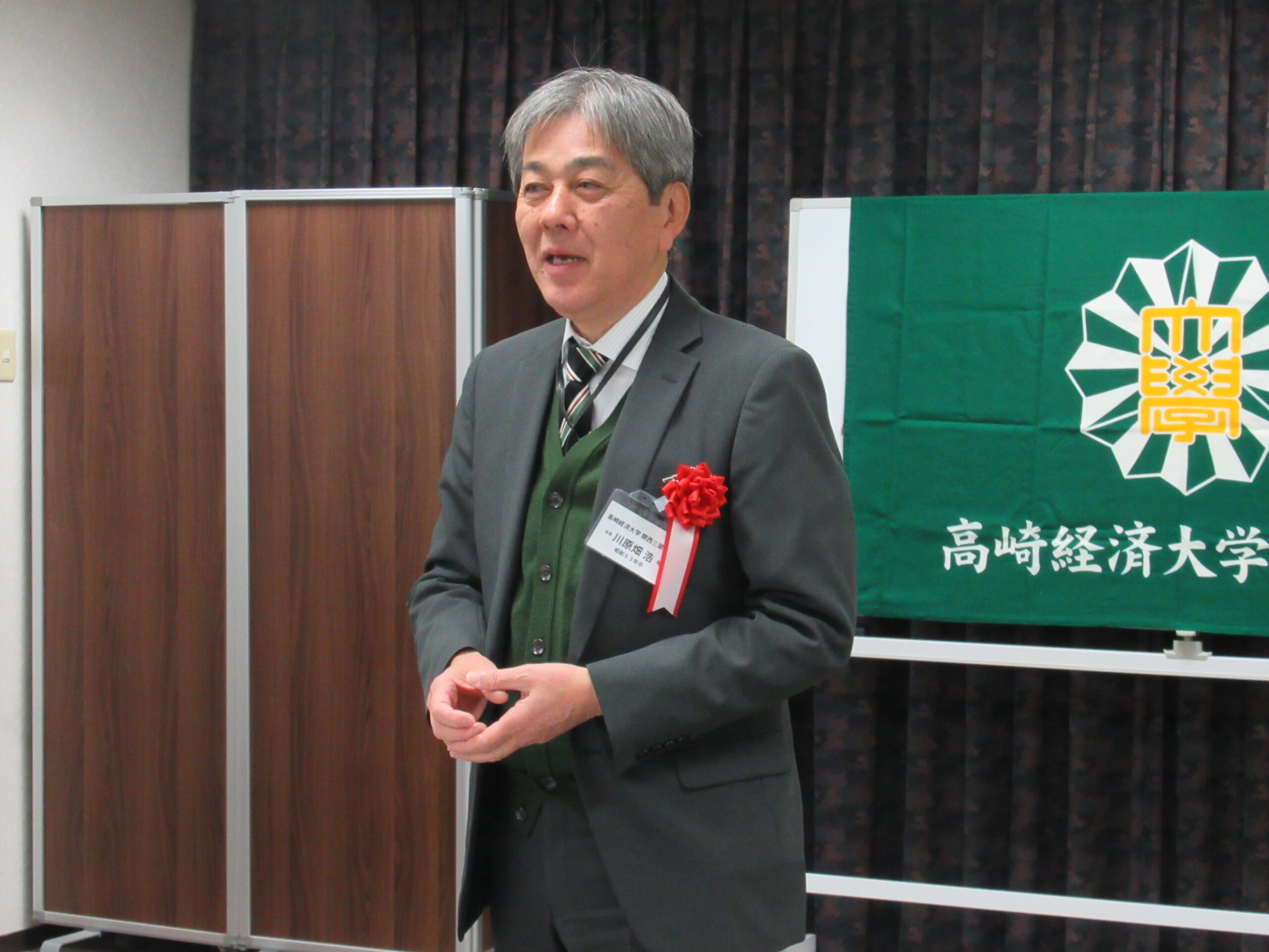来賓としてご出席いただいた水口学長からは、就職相談会をはじめとする大学のキャリア支援事業への同窓会の協力に対し、謝辞が述べられるとともに、徳島榛名会による「共同教育センター事業基金」への寄付についても深い感謝の意が表されました。同事業においては、NEC社員による講義等、魅力あるプログラムの実施を皮切りに、現在、様々な企業との連携が広がっているとのことです。母校・高崎経済大学の明るい未来に、出席者一同、大いに胸を膨らませるお話となりました。