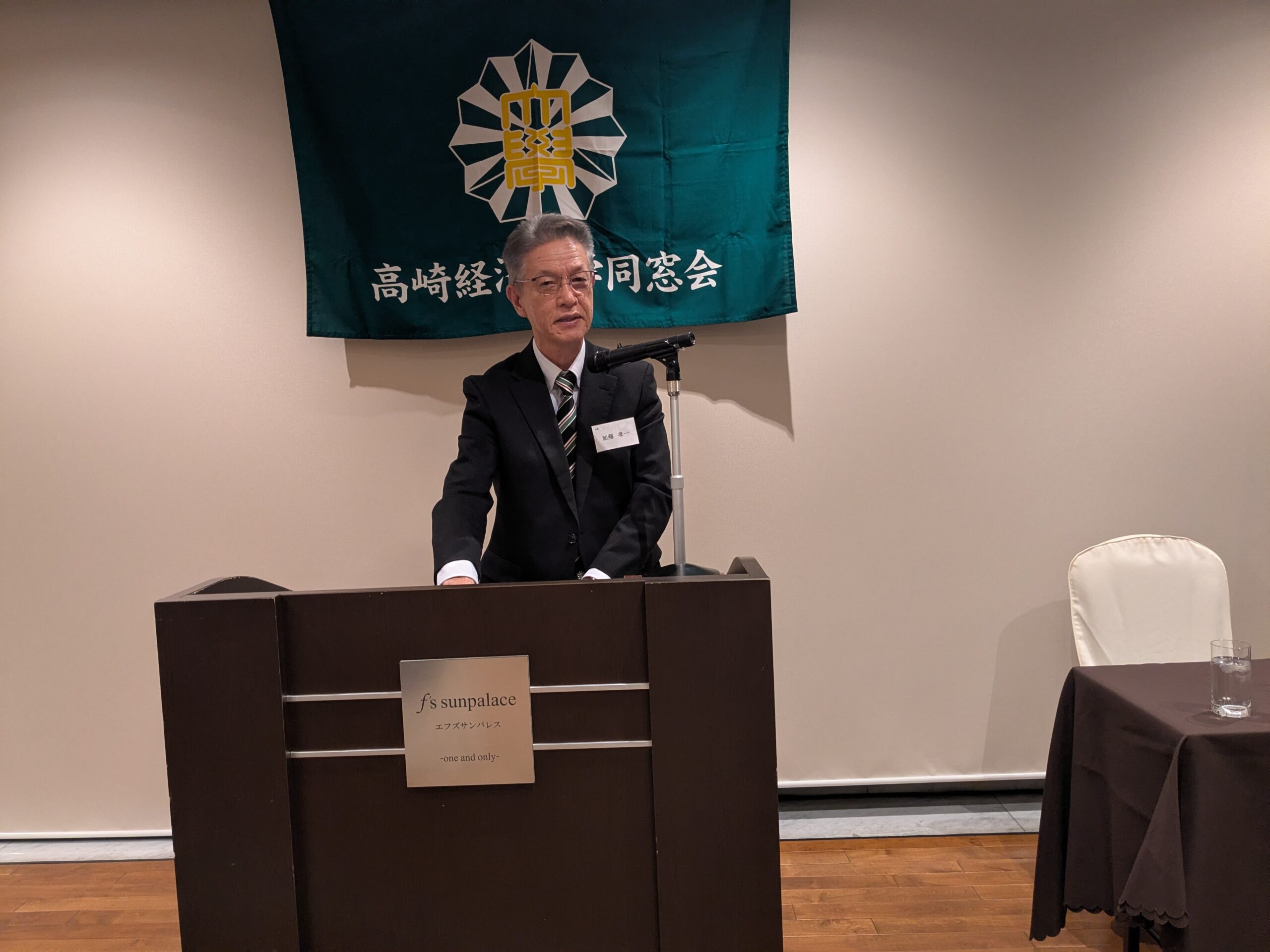 来賓挨拶では、佐藤学生部長から「東北震災後、復興支援にかかわり福島に住んでいました。本学は来年地域政策学30周年、再来年は70周年を迎えますが、少子化がさらに厳しく、デジタル・グローバル化や地域の課題解決のため、共同教育研究センター設立に向け進めています。大学と社会をつなぐため、センター基金にご協力いただければありがたいです。」と述べられました。