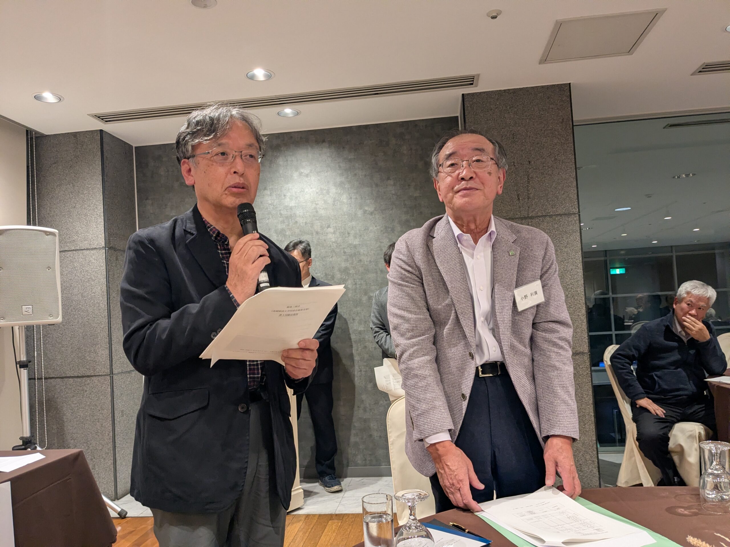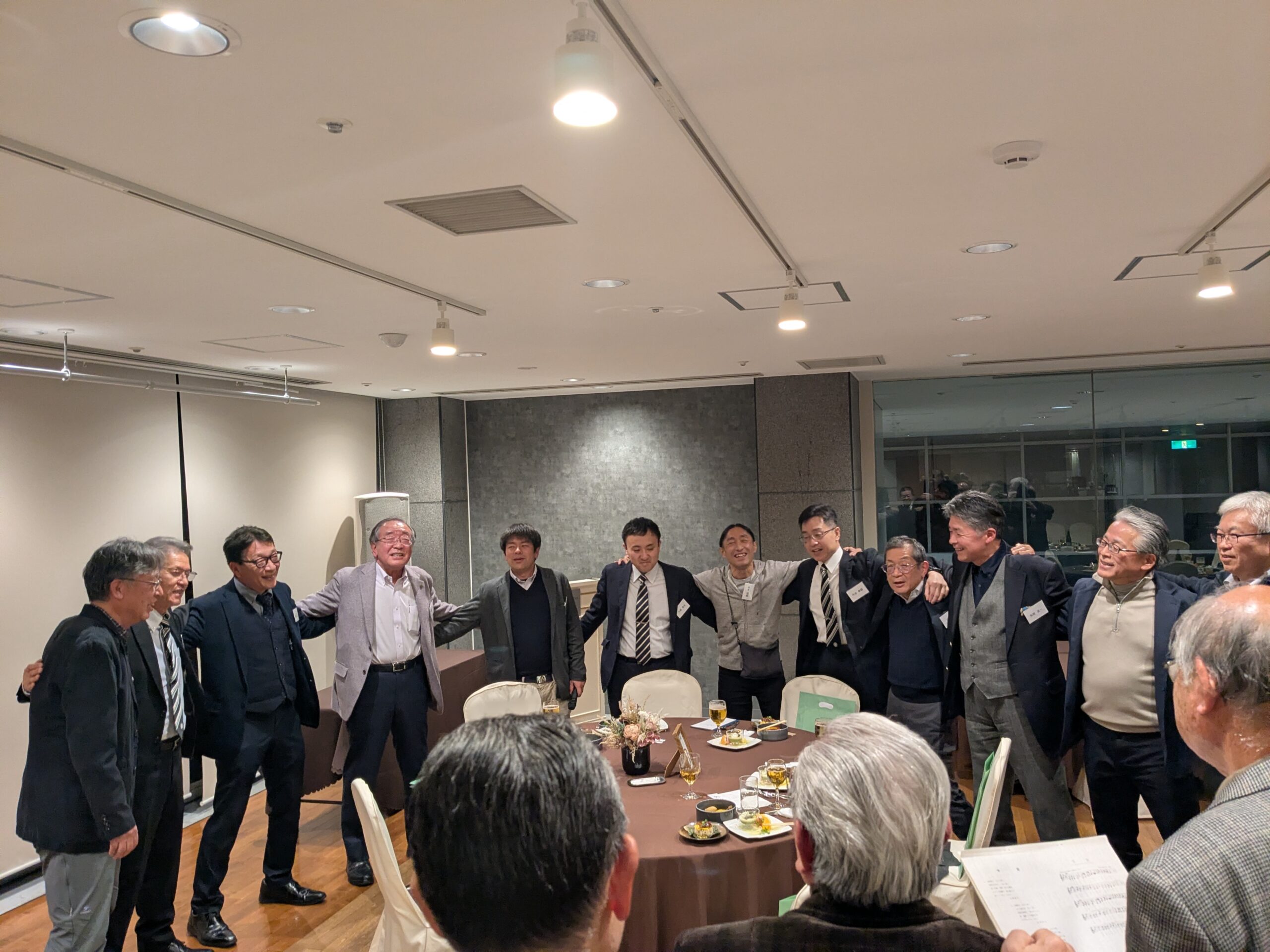 矢吹副会長による乾杯の挨拶から懇親会が始まり、参加者の親睦を深め、最後は大学学歌の斉唱で締めくくられました。