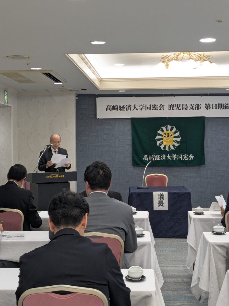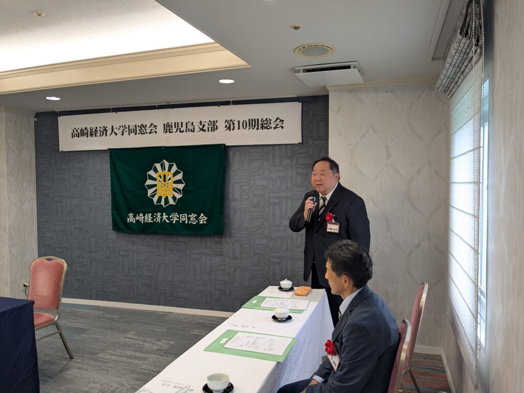 令和7年10月11日(土)「鹿児島サンロイヤルホテル」にて、「令和7年度第10期総会(鹿児島榛名会)」が、台風23号接近が心配される中開催されました。来賓として、大学から阿部副学長、同窓会本部から小暮副会長にご出席いただきました。