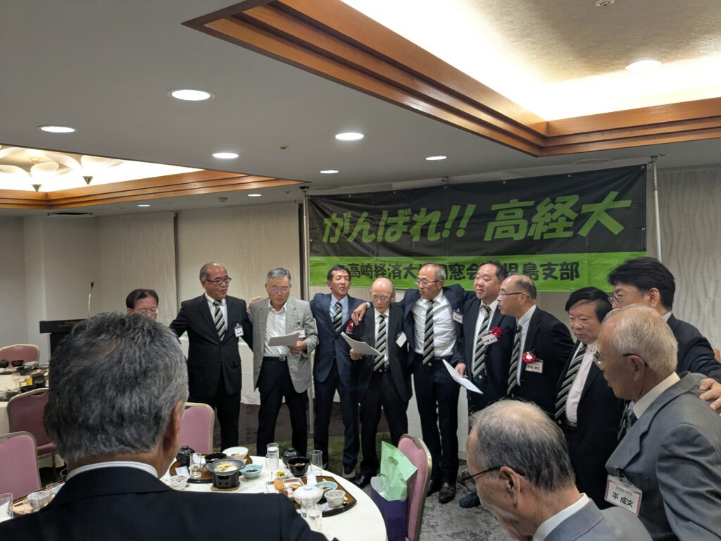 その後の懇親会では、参加者一人ひとりから大学時代の思い出や現況の報告があり、最後は大学学歌の斉唱で締めくくられました。ご参加ご協力いただきましてありがとうございました。