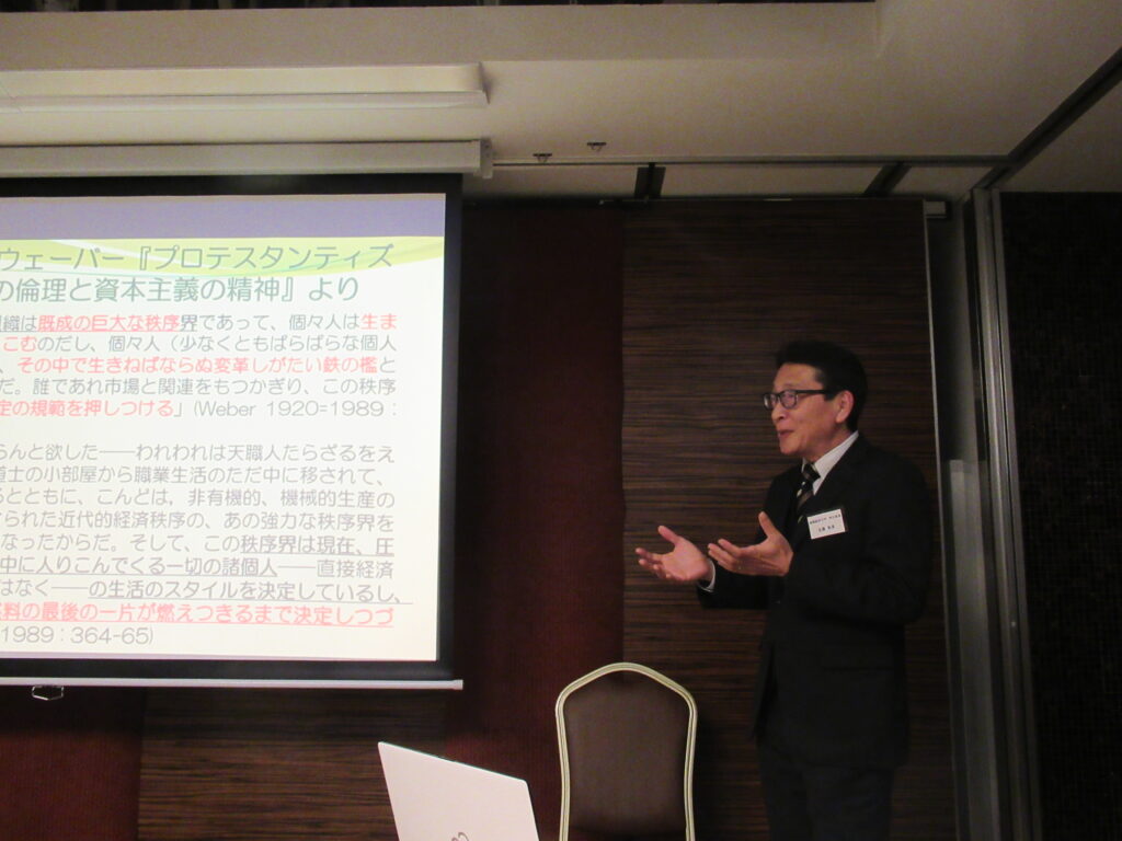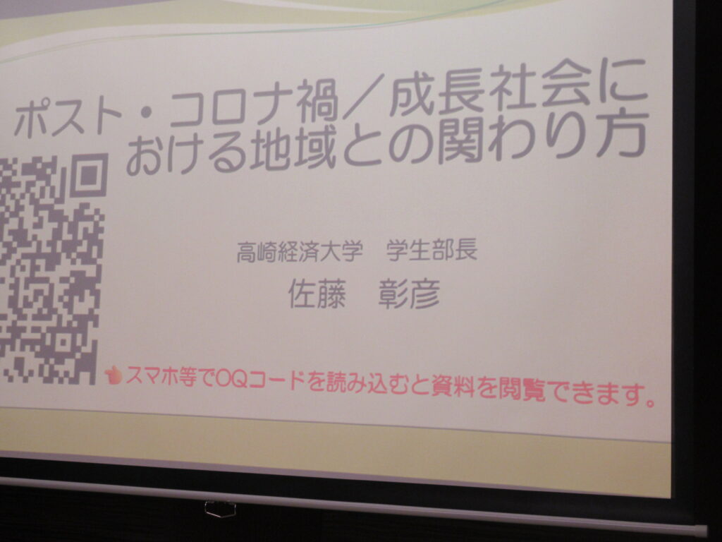 総会後は、来賓の佐藤学生部長より「ポスト・コロナ禍/成長社会における地域との関わり」というテーマでご講演をいただきました。資本主義経済の発達、そしてコロナ禍による急速な社会の変化が、我々の生活様式にどれほど深い影響を与えてきたのか、講演を通じて、改めてその重みを感じました。特に他者との横の「つながり」が希薄になりつつある現代において、私たちは何を大切にすべきなのかを改めて考える貴重なきっかけをいただきました。