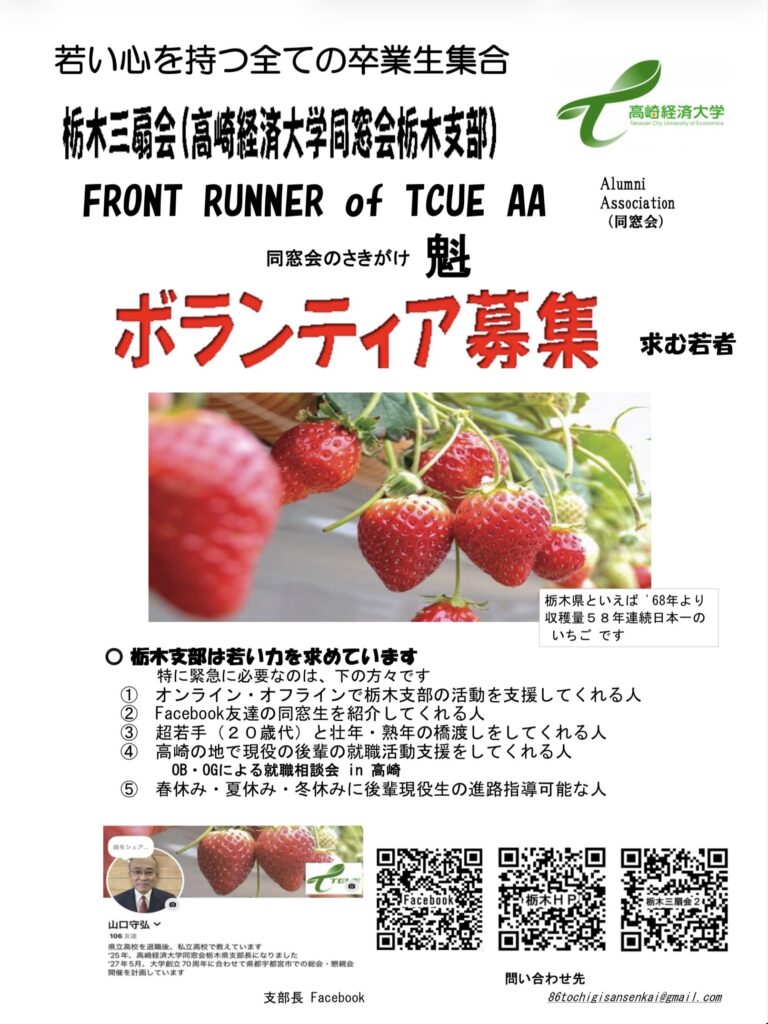 栃木県支部では2027年の大学創立70周年に合わて全県的活動をめざし、OB・OGの力を求めています